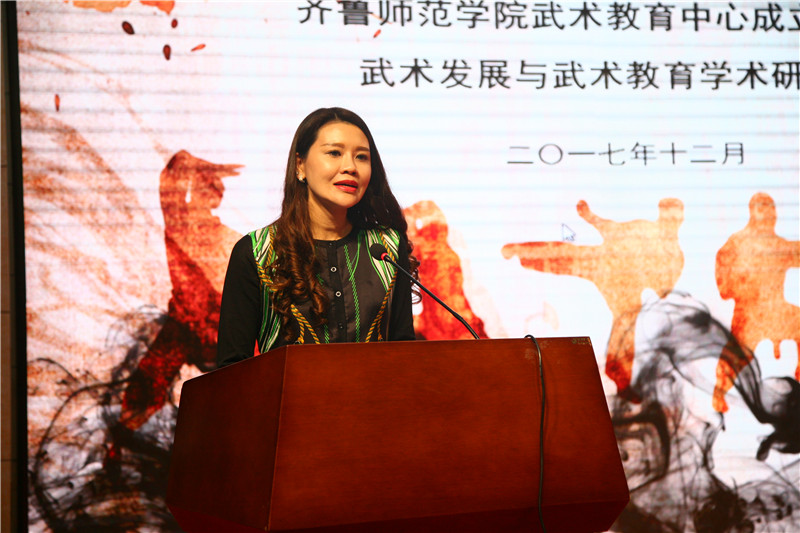 王玉华在欢迎致辞中指出,推动武术进校园,是武术教育事业发展的百年大计,成立齐鲁师范学院武术教育中心,对继承和发扬中华民族传统武术、突出齐鲁师范学院文化育人特色都具有十分重要的意义。我校武术教育将致力于推动武术教育事业发展,通过开展形式多样的武术教育课程,提高学生的身心健康,为大学生武术教育文化事业的发展,为中华武术事业的发展和中华民族文化的繁荣做出应有的贡献。