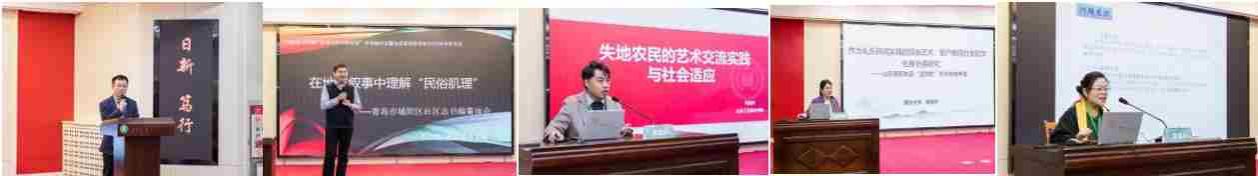 主旨报告环节由鲁东大学艺术学院副院长李文杰主持。青岛城市学院李伟刚以青岛城阳社区志书写为例,提出传统志书需突破官方框架,融入居民口述史、方言习俗等“地方叙事”,构建“有温度、能承载乡愁”的社区传记,实现从“冰冷史料”到“鲜活记忆载体”的转变。山东工艺美术学院毛晓帅基于河南信阳社区调查,指出失地农民通过两类传统民俗继承与新活动创新的艺术实践解决身份模糊、社交断裂等问题,以艺术交流实践重构“趣缘”关系网络。烟台大学李晓宁研究认为烟台海阳大秧歌最初是卫所军户的家宴乐舞,随着卫所制度取消,逐渐演变为军户后代维系自身文化认同的重要纽带。鲁东大学林琳阐释了高校助推地方戏曲创新性发展的三级联动机制,就传统戏曲怎样注入当代生命力问题分享了自己的实践与思考。
