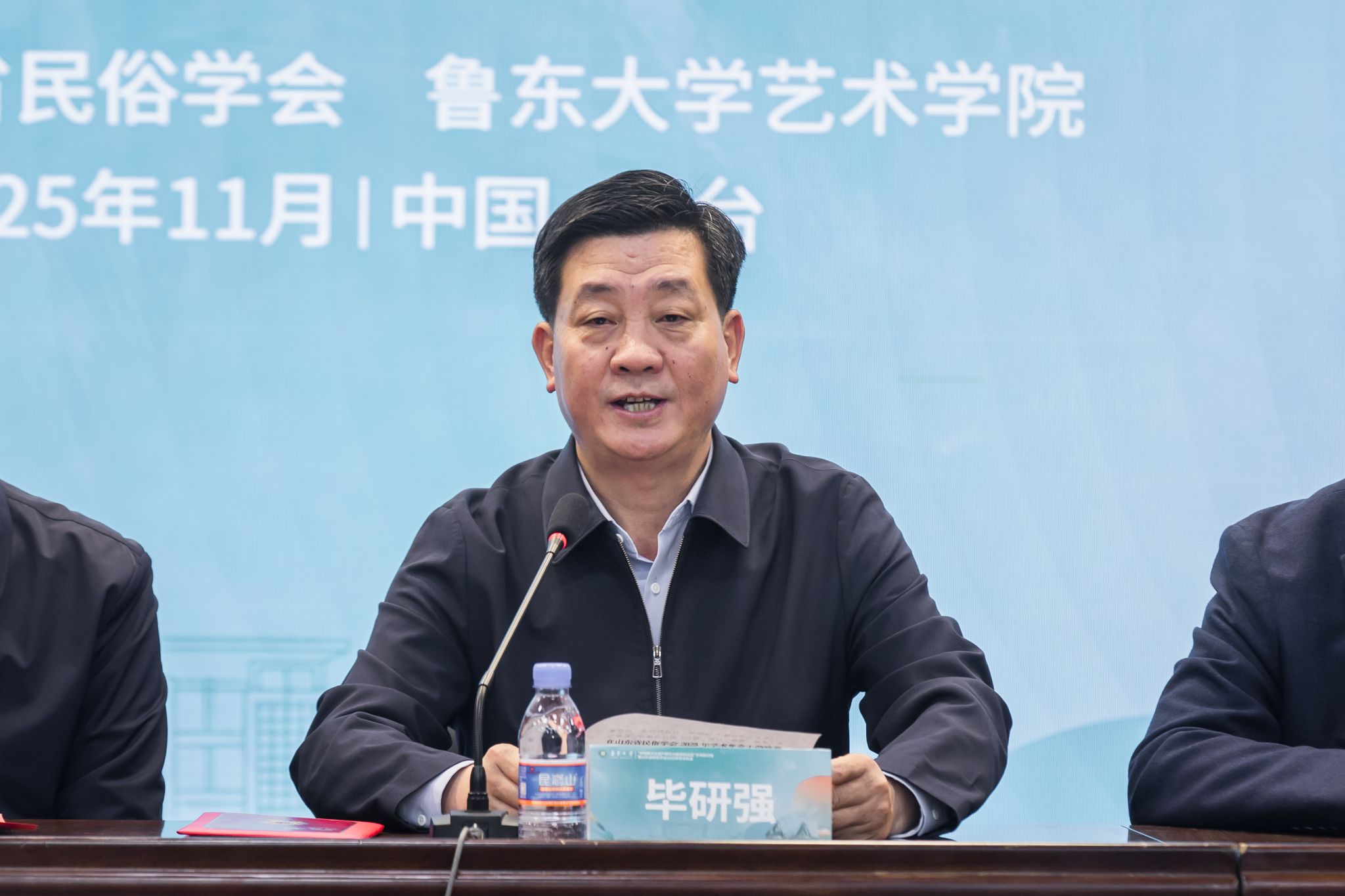 毕研强在致辞中表示,鲁东大学始建于1930年。自建校以来,始终秉承“厚德、博学、日新、笃行”的校训精神,扎根齐鲁大地,深耕教育沃土,积淀了深厚的文化底蕴。我国著名民俗学家、山东省民俗学会早期主要负责人之一山曼(单丕艮)先生,曾长期在这里弘文励教,为民俗学学科建设作出了突出贡献。鲁东大学将以本次年会为契机,进一步加强与山东省民俗学会的交流合作,为推动全省非物质文化遗产保护事业繁荣发展作出新的更大贡献。
