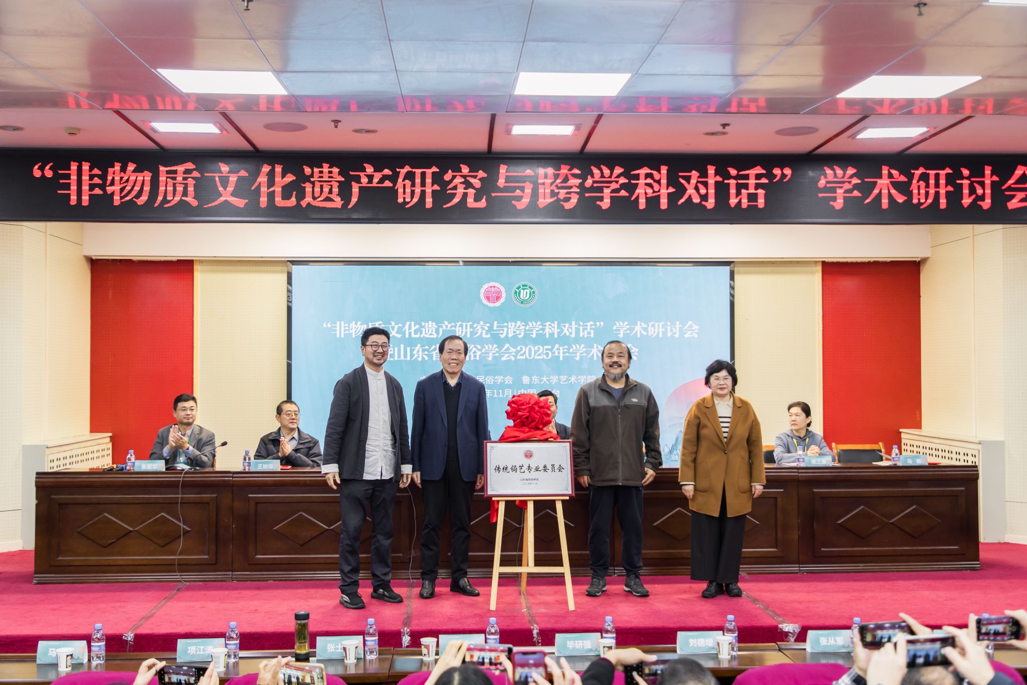 开幕式上,学会举行了“山东省民俗学会传统锔艺专业委员会”揭牌仪式,郭永军、张士闪、马新、耿海胜共同为“山东省民俗学会传统锔艺专业委员会”揭牌。传统锔艺代表性传承人耿海胜担任专委会主任。
