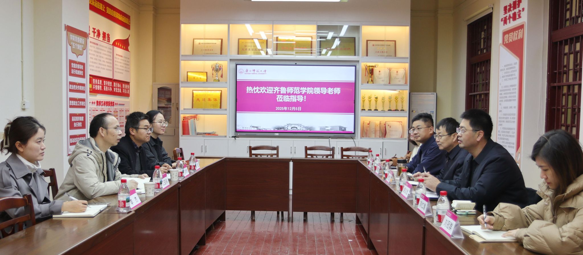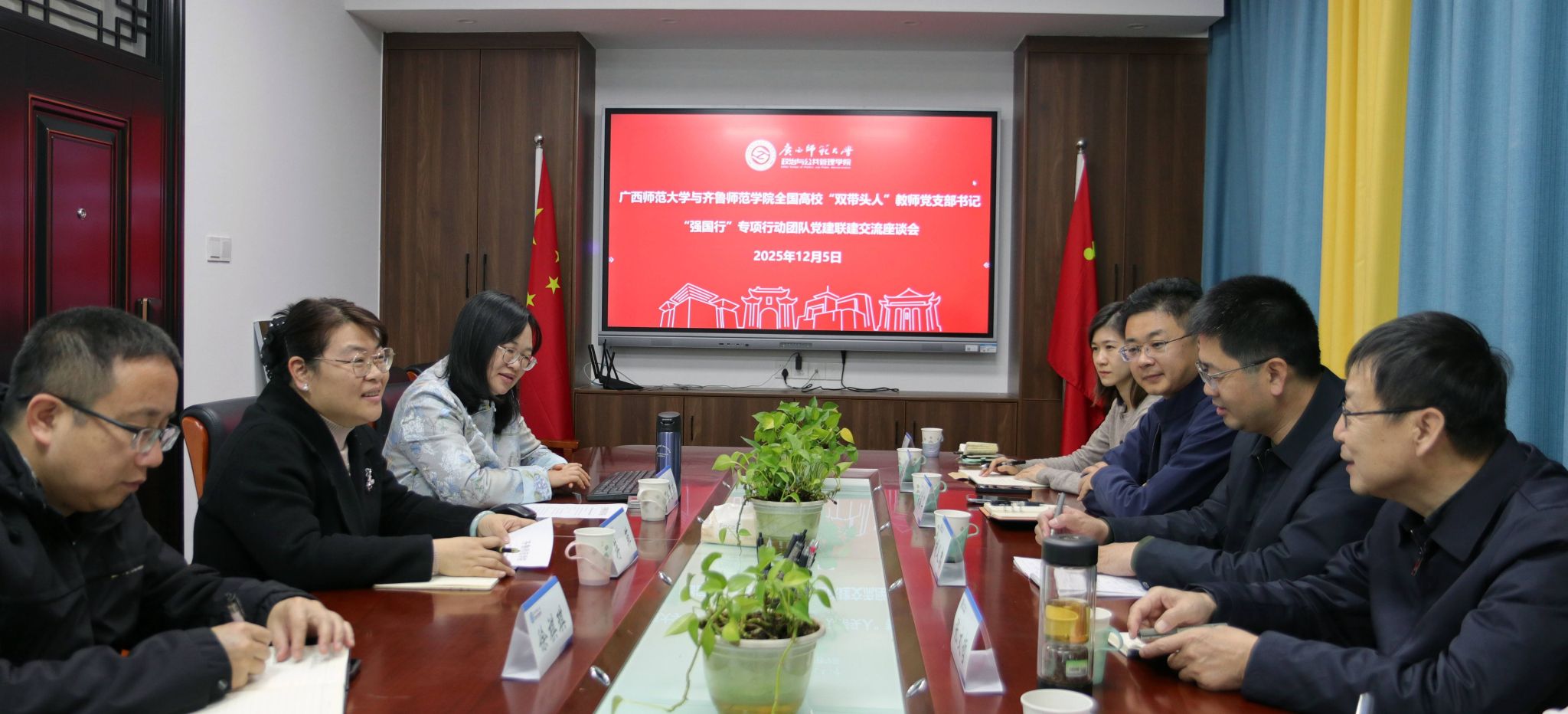 12月5日,为深入贯彻落实教育部办公厅《关于开展高校“双带头人”教师党支部书记“强国行”专项行动的通知》要求,以高质量党建引领立德树人根本任务落地见效。全国高校“双带头人”教师党支部书记“强国行”专项行动团队——齐鲁师范学院文学与历史文化学院教师第二党支部(中国乡村调查研究中心)赴广西师范大学,同广西师大文学院/新闻与传播学院、政治与公共管理学院、历史文化与旅游学院开展党建联建活动。