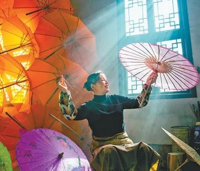 江西省上饶市婺源县,工人在制作纸伞。徐国明摄(影像中国)