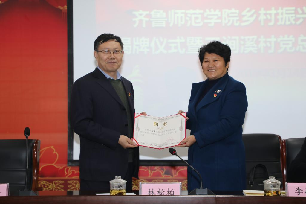 活动中,林松柏校长还为高淑贞书记颁发齐鲁师范学院“特聘教授”聘书,与会科研团队成员还列席了三涧溪村主题党日活动。