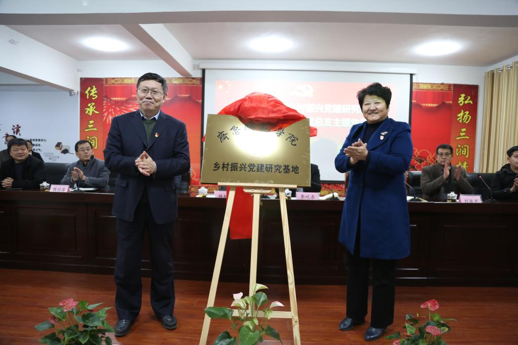 在党的十九大报告提出乡村振兴发展战略,习近平总书记考察三涧溪村基层党建工作,并在新年贺词中挂念村里父老乡亲之际,为总结提炼三涧溪村党建模式,探索乡村组织振兴发展规律,1月14日,我校在三涧溪村设立乡村振兴党建研究基地。学校党委副书记、校长、齐鲁师范学院中国乡村调查研究中心主任林松柏教授作为研究团队和基地负责人与三涧溪村党总支书记高淑贞共同为基地揭牌。学校党委宣传部、人事处、科研处、马克思主义学院、外国语学院及章丘双山街道办事处有关负责人,研究团队全体成员,三涧溪村全体党员干部,部分村民和学生代表共二百余人参加仪式。